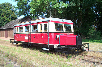 | Das Vorbild:Ein Vorbild für meinen Wismarer Schienenbus T 41 findet man nahe Bremen, in Bruchhausen-Vilsen. Dort betreibt der Deutsche Eisenbahn-Verein e.V. (DEV) Deutschlands älteste MuseumsbahnstreckeIch hatte am 08.09.2002 die Möglichkeit die komplette meterspurige (=Schmalspur) Museumsstrecke zuerst mit einem Dampfzug und danach mit dem Wismarer Schienenbus T 41 zu bereisen. Es war ein echtes Erlebnis, denn der Schienenbus neigt wegen seines kurzen Radstandes dazu, während der Fahrt leicht zu schlingern. Wegen der langen Motorvorbauten (für jede Richtung gibt es einen eigenen Motor) hat diese Triebwagen-Bauart den Spitznamen "Schweineschnäutzchen" erhalten. Mehr Infos zum T 41 gibt es hier.