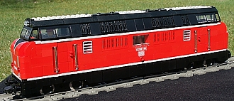 | Das Vorbild:Die V 200 ist wohl eine der bekanntesten Vertreter der Nachkriegsdieselloks der Deutschen Bahn AG, und das, obwohl sie nur in 136 Exemplaren gebaut wurde.Es handelt sich bei dieser Lok um eine zweimotorige Großdiesellok mit ursprünglich 2 x 1000 PS Leistung (später bis zu 2 x 1350 PS). Die Lok war in den ersten Jahren vor Schnellzügen als auch vor Güterzügen anzutreffen. Mit fortschreitender Elektrifizierung des Streckennetzes verschwand die V 200 immer mehr aus dem Einsatzdienst. Die letzten Fahrten unter DB Emblem müssen irgendwann Mitte der 80er / Anfang der 90er Jahre stattgefunden haben. Mehr Vorbildfotos gibt es: HIER
