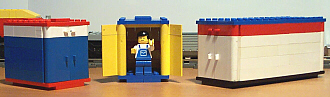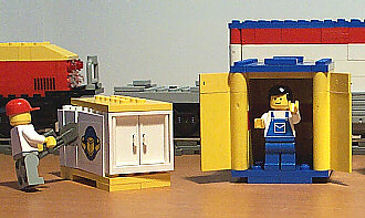 | Die GrossenIrgendwie empfand ich die kleinen Container schon immer als Witz. Somit überlegte ich mir eine realistische Grösse für Container.Vorgaben: •Verwendung von Teilen der alten kleinen Container •Längenmasse wie bei den alten kleinen Containern •Stapelbarkeit ähnlich den alten kleinen Containern •Stehhöhe für ein Minifig im Container